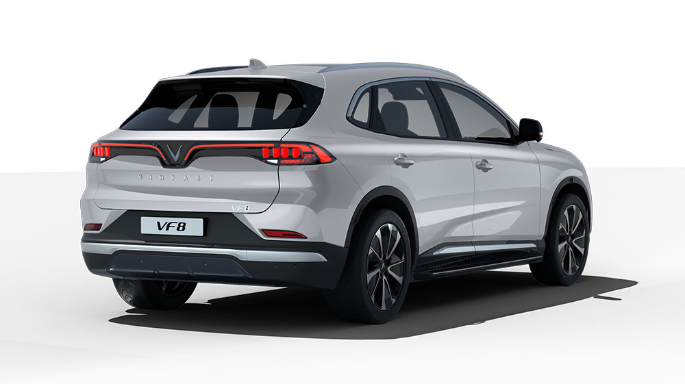VinFast VF8 được thiết kế với tỉ lệ thiết kế hiện đại định hình bởi triết lý “Cân bằng động”. Những khối cong mềm mại chấm phá bởi các đường cắt sắc nét tạo nên ấn tượng mạnh mẽ, mang đầy hơi thở của tương lai.