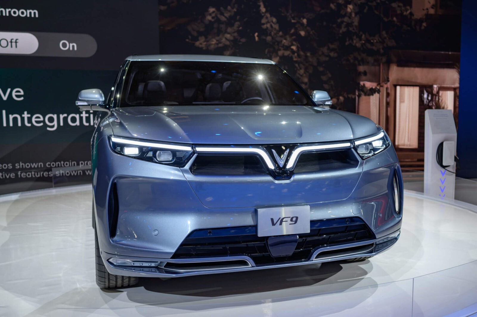 VinFast VF9 sở hữu ngoại hình đúng chuẩn phong cách SUV full-size cơ bắp. Đầu xe xuất hiện loạt thiết kế hình khối, thể hiện rõ sự mạnh mẽ của “người anh cả” trong gia đình VinFast. Những mảng dập nổi lớn trên nắp ca-pô nhấn mạnh vẻ hầm hố cho xe.